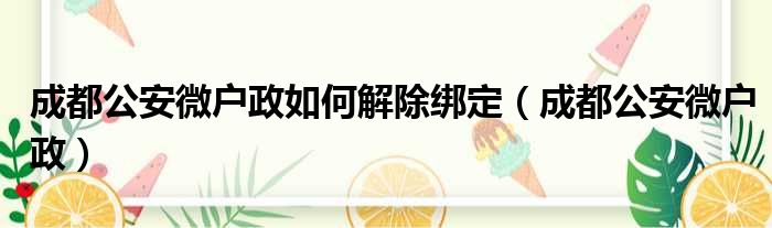 导读 大家好,今天小六子来为大家解答以下的问题,关于成都公安微户政如何解除绑定,成都公安微户政这个很多人还不知道,现在让我们一起来看看吧