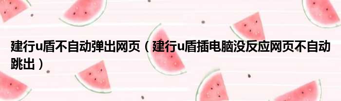 建行u盾不自动弹出网页(建行u盾插电脑没反应网页不自动跳出)