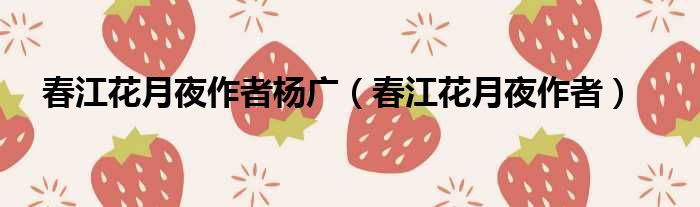 春江花月夜作者杨广(春江花月夜作者)