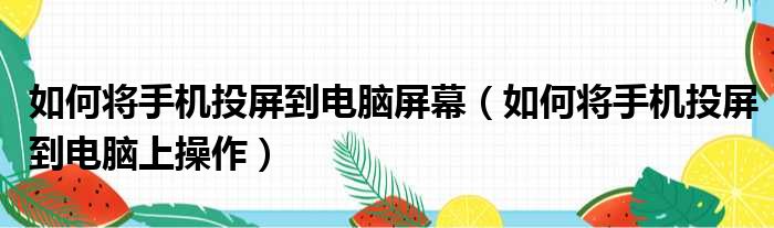 如何将手机投屏到电脑屏幕(如何将手机投屏到电脑上操作)