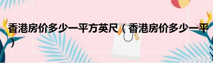 导读 大家好,今天小六子来为大家解答以下的问题,关于香港房价多少一平方英尺,香港房价多少一平这个很多人还不知道,现在让我们一起来看看吧!1