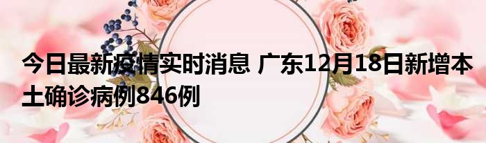 广东卫健委通报,12月18日0-24时,全省新增本土确诊病例846例(广州374例,深圳70例,珠海59例,汕头45例,佛山42例,韶关16例,河源1例