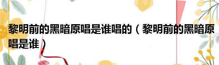 黎明前的黑暗原唱是谁唱的(黎明前的黑暗原唱是谁)
