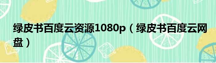 导读 大家好,今天小六子来为大家解答以下的问题,关于绿皮书百度云资源1080p,绿皮书百度云网盘这个很多人还不知道,现在让我们一起来看看吧!1