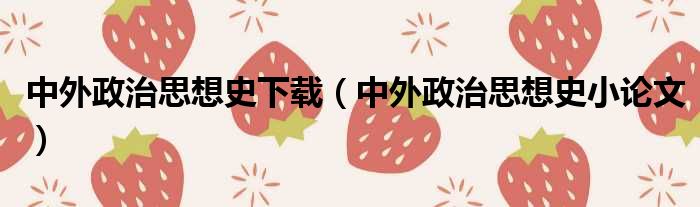 大家好,今天小六子来为大家解答以下的问题,关于中外政治思想史下载,中外政治思想史小论文这个很多人还不知道,现在让我们一起来看看吧!