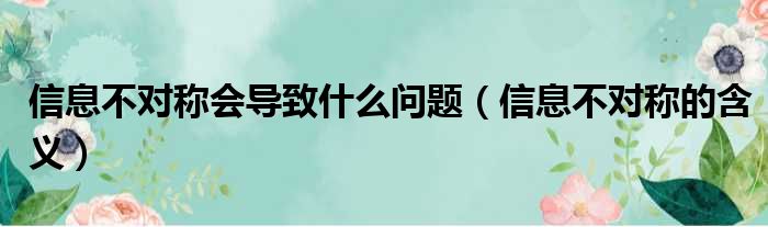 导读 大家好,今天小六子来为大家解答以下的问题,关于信息不对称会导致什么问题,信息不对称的含义这个很多人还不知道,现在让我们一起来看看吧