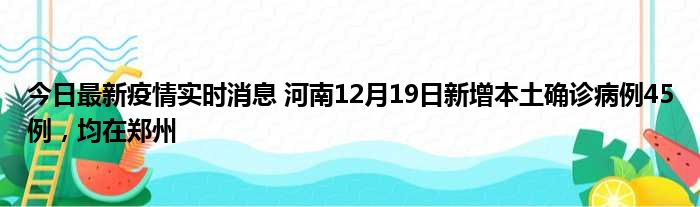 今日最新疫情实时消息 河南12月19日新增本土确诊病例45例,均在郑州