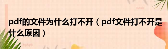 pdf的文件为什么打不开(pdf文件打不开是什么原因)