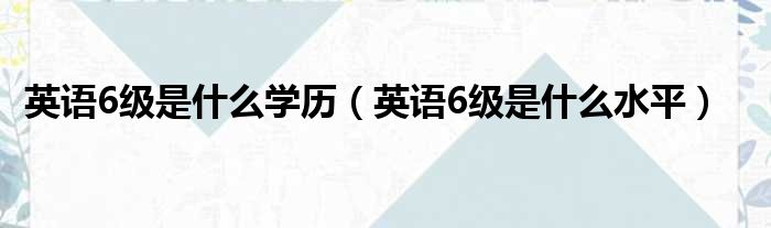 大家好,今天小六子来为大家解答以下的问题,关于英语6级是什么学历,英语6级是什么水平这个很多人还不知道,现在让我们一起来看看吧!