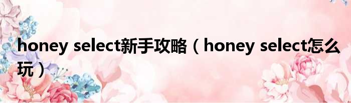 导读 大家好,今天小六子来为大家解答以下的问题,关于honey select新手攻略,honey select怎么玩这个很多人还不知道,现在让我们一起来看看吧