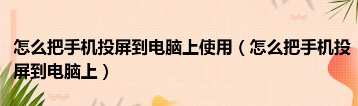 怎么把手机投屏到电脑上使用(怎么把手机投屏到电脑上)
