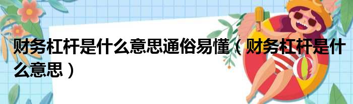 财务杠杆是什么意思通俗易懂(财务杠杆是什么意思)