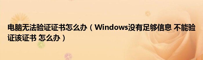 导读 大家好,今天小六子来为大家解答以下的问题,关于电脑无法验证证书怎么办,Windows没有足够信息 不能验证该证书 怎么办这个很多人还不知道
