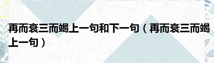 再而衰三而竭上一句和下一句(再而衰三而竭上一句)