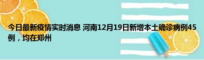 今日最新疫情实时消息 河南12月19日新增本土确诊病例45例,均在郑州