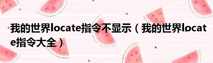 导读 大家好,今天小六子来为大家解答以下的问题,关于我的世界locate指令不显示,我的世界locate指令大全这个很多人还不知道,现在让我们一起来
