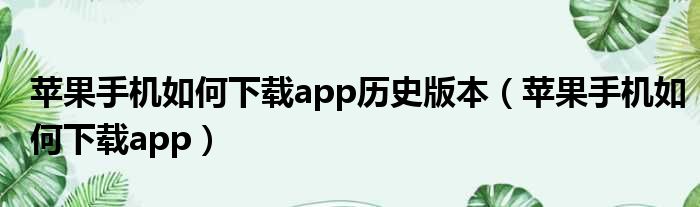苹果手机如何下载app历史版本(苹果手机如何下载app)