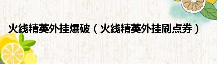 导读 大家好,今天小六子来为大家解答以下的问题,关于火线精英外挂爆破,火线精英外挂刷点券这个很多人还不知道,现在让我们一起来看看吧!1、你