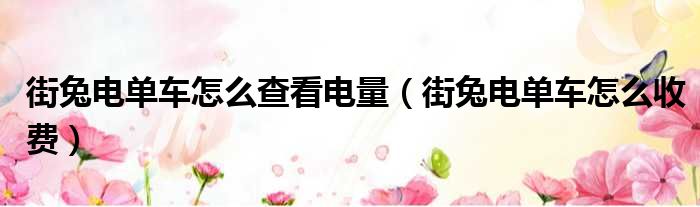 导读 大家好,今天小六子来为大家解答以下的问题,关于街兔电单车怎么查看电量,街兔电单车怎么收费这个很多人还不知道,现在让我们一起来看看吧