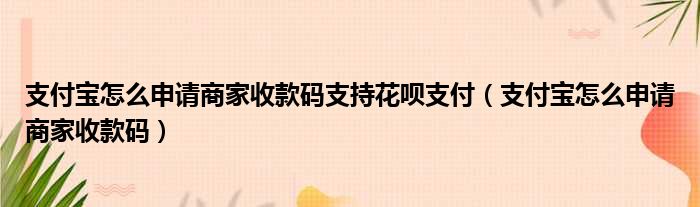 支付宝怎么申请商家收款码支持花呗支付(支付宝怎么申请商家收款码)