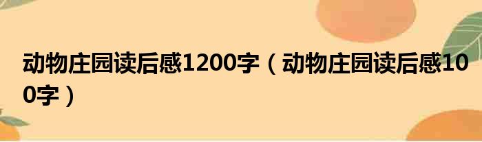 导读 大家好,今天小六子来为大家解答以下的问题,关于动物庄园读后感1200字,动物庄园读后感100字这个很多人还不知道,现在让我们一起来看看吧!
