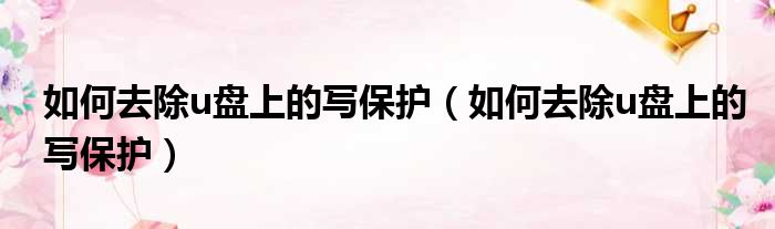 如何去除u盘上的写保护(如何去除u盘上的写保护)