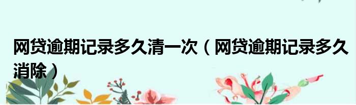 网贷逾期记录多久清一次(网贷逾期记录多久消除)