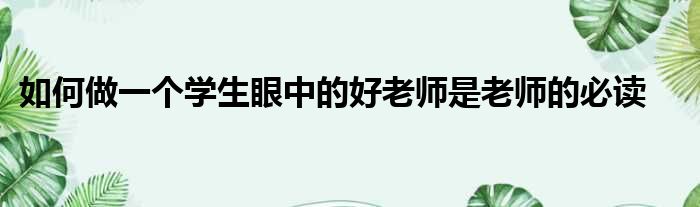 如何做一个学生眼中的好老师是老师的必读