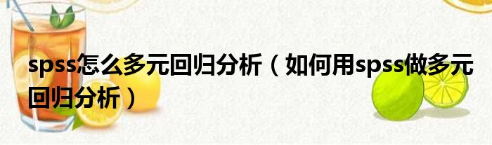 spss怎么多元回归分析(如何用spss做多元回归分析)