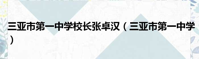 导读 大家好,今天小六子来为大家解答以下的问题,关于三亚市第一中学校长张卓汉,三亚市第一中学这个很多人还不知道,现在让我们一起来看看吧!1