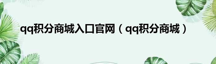 qq积分商城入口官网(qq积分商城)