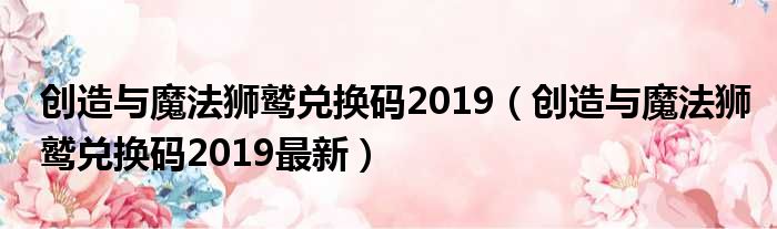 导读 大家好,今天小六子来为大家解答以下的问题,关于创造与魔法狮鹫兑换码2019,创造与魔法狮鹫兑换码2019最新这个很多人还不知道,现在让我们