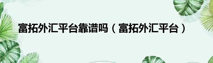 富拓外汇平台靠谱吗(富拓外汇平台)