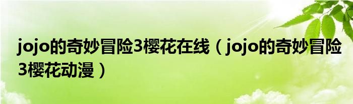 jojo的奇妙冒险3樱花在线(jojo的奇妙冒险3樱花动漫)