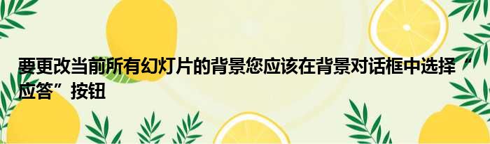 要更改当前所有幻灯片的背景您应该在背景对话框中选择“应答”按钮