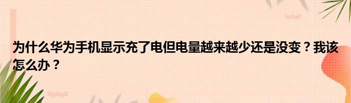 导读 大家好,今天小六子来为大家解答以下的问题,关于为什么华为手机显示充了电但电量越来越少还是没变?我该怎么办?这个很多人还不知道,现在