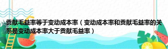 贡献毛益率等于变动成本率(变动成本率和贡献毛益率的关系是变动成本率大于贡献毛益率)