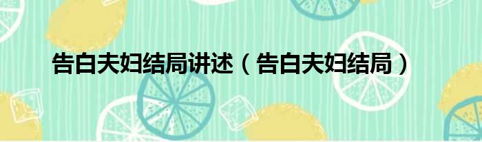 大家好,今天小六子来为大家解答以下的问题,关于告白夫妇结局讲述,告白夫妇结局这个很多人还不知道,现在让我们一起来看看吧!
