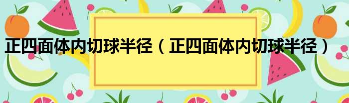1、外接球.边长为a的正四面体可以看成是边长是(√2/2)a的正方体截出来的,则其外接球直径是正方体边长的√3倍.2、内切球半径.设正四面体是S-ABC,过点S作高线SH交底面ABC于点H,则内切球球心在SH上,设其半径是R,则主要就产生四个四面体:O-SAB、O-SBC、O-SCA、O-ABC,这四个四面体的高都是内切球的半径R,底面都是以a为边长是正三角形,利用等体积法可以求出内切球半径R的值。