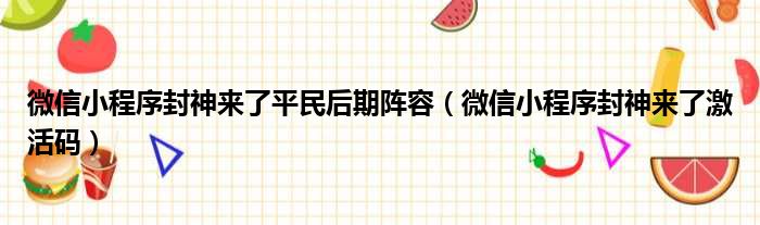 导读 大家好,今天小六子来为大家解答以下的问题,关于微信小程序封神来了平民后期阵容,微信小程序封神来了激活码这个很多人还不知道,现在让我