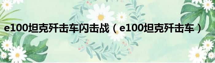 e100坦克歼击车闪击战(e100坦克歼击车)