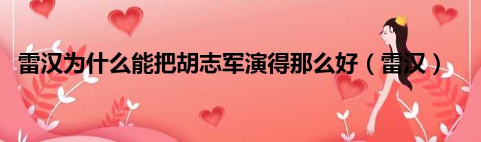 导读 大家好,今天小六子来为大家解答以下的问题,关于雷汉为什么能把胡志军演得那么好,雷汉这个很多人还不知道,现在让我们一起来看看吧!1、张