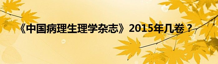 导读 大家好,今天小六子来为大家解答以下的问题,关于《中国病理生理学杂志》2015年几卷?这个很多人还不知道,现在让我们一起来看看吧!1、中国