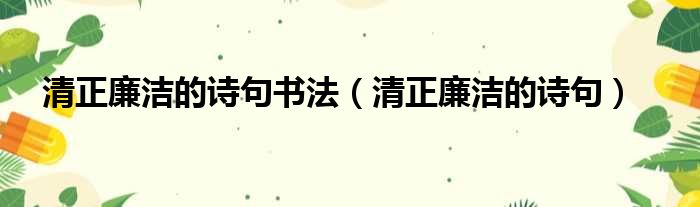 清正廉洁的诗句书法(清正廉洁的诗句)