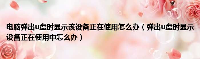 电脑弹出u盘时显示该设备正在使用怎么办(弹出u盘时显示设备正在使用中怎么办)
