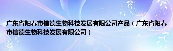 广东省阳春市信德生物科技发展有限公司产品(广东省阳春市信德生物科技发展有限公司)