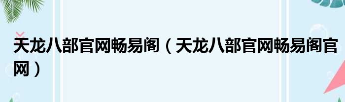 天龙八部官网畅易阁(天龙八部官网畅易阁官网)