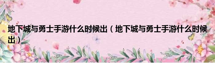 地下城与勇士手游什么时候出(地下城与勇士手游什么时候出)