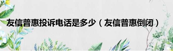 导读 大家好,今天小六子来为大家解答以下的问题,关于友信普惠投诉电话是多少,友信普惠倒闭这个很多人还不知道,现在让我们一起来看看吧!1、只