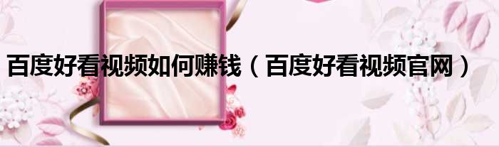 大家好,今天小六子来为大家解答以下的问题,关于百度好看视频如何赚钱,百度好看视频官网这个很多人还不知道,现在让我们一起来看看吧!
